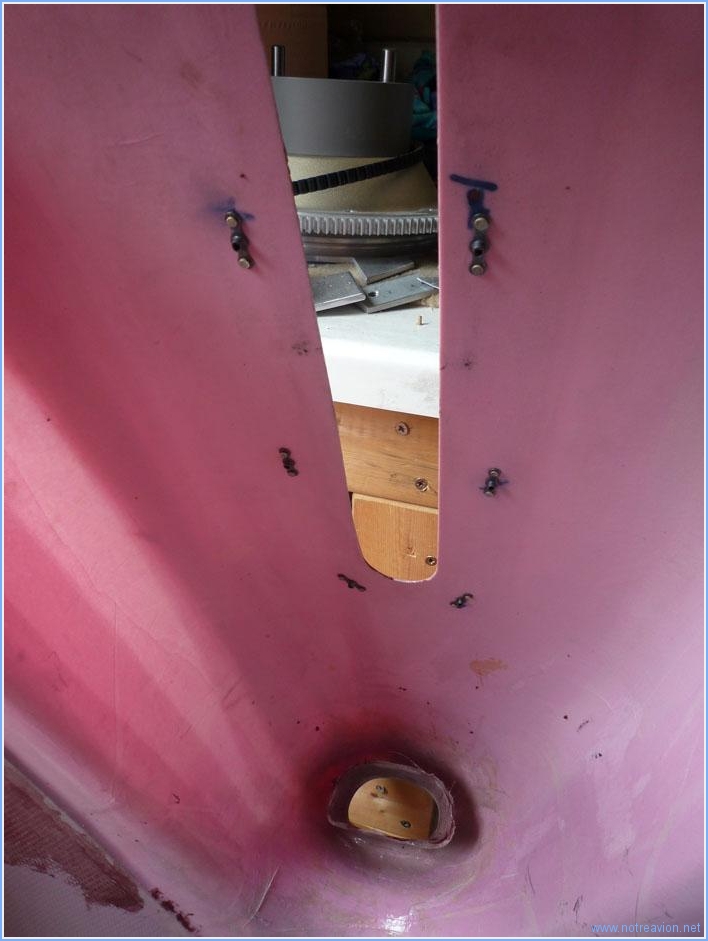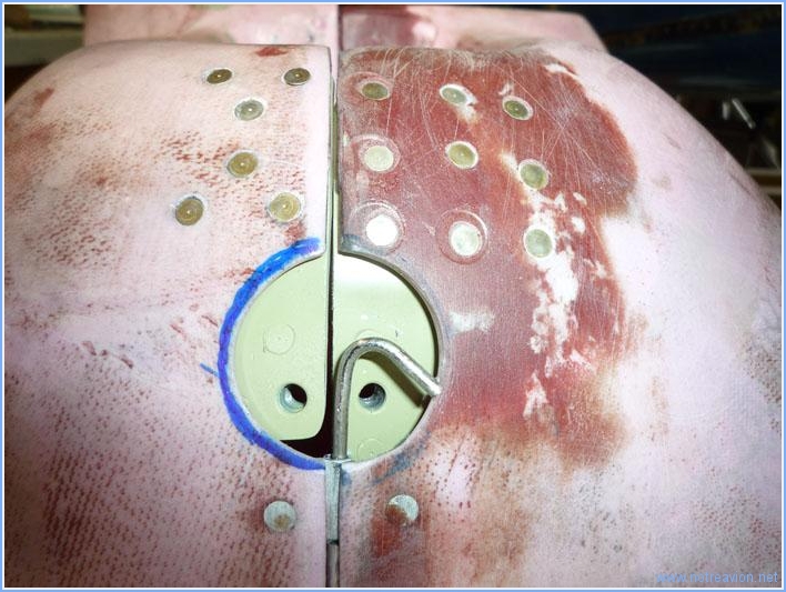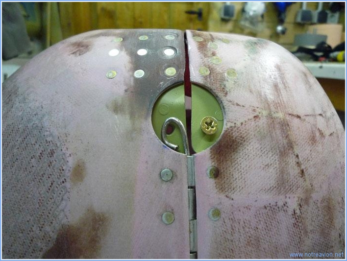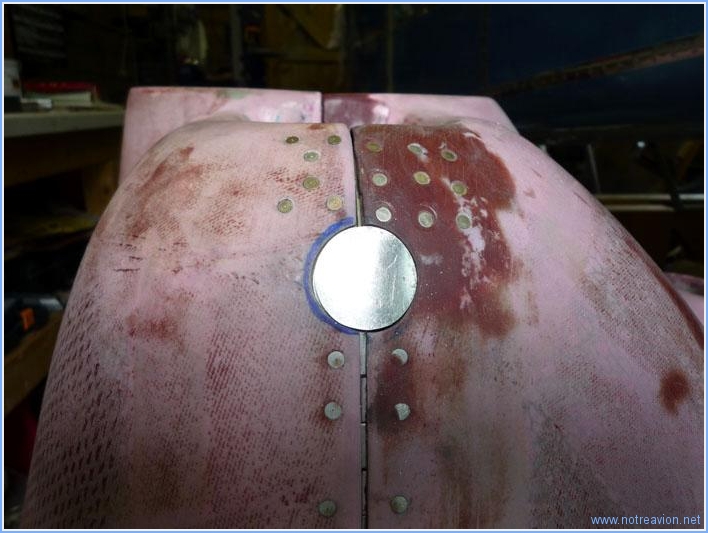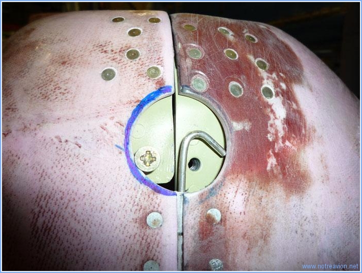 Suite du petit montage des pièces pour retenir les charnières latérales. Voici une vue avec les deux platines en place et la charnière maintenue par une des deux vis. Et voici un essai de fabrication du petit cache avec les deux vis. Le cache final ne sera fabriqué qu'après rivetage des platines, pour bien positionner les perçages pour le vis. J'ai également poncé l'écope sur le capot inférieur, il y a encore un peu de masticage de finition à faire de ce coté là . Temps de travail sur le sous-ensemble Aujourd'hui : 2h (Total : 126h) |