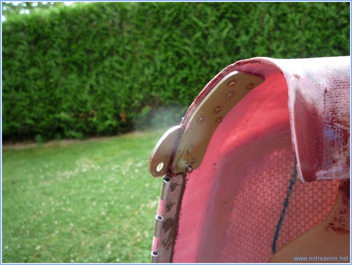 Après passage d'une couche de primaire sur les platines de fixations, je les ai rivetées sur les capots. Voici le coté gauche. Et voici le coté droit sur lequel j'ai quelques petits soucis, la vis de fixation est un peu trop près du bord sur le capot supérieur. La solution la plus simple serait d'agrandir un peu le perçage, l'autre solution serait de refaire une nouvelle platine. Je verrai cela demain. Temps de travail sur le sous-ensemble Aujourd'hui : 1h (Total : 127h) |