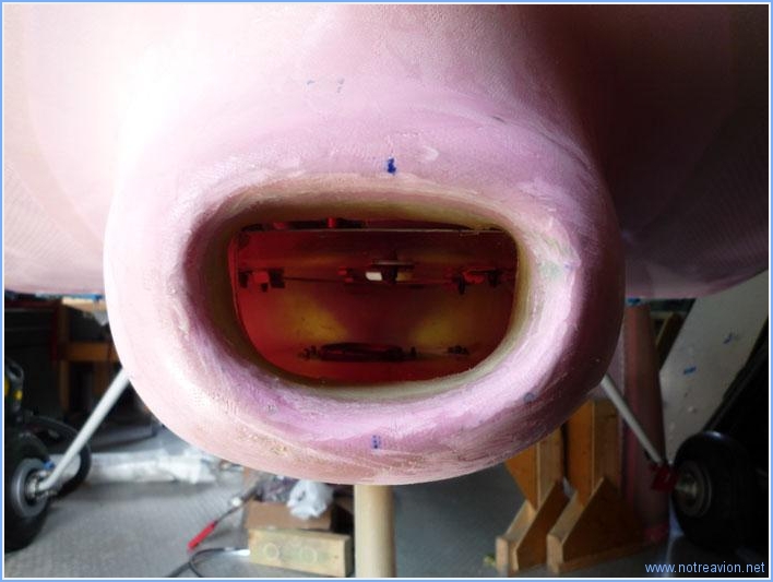 Avant de poser un peu plus de fibre de verre sur l'écope, je ponce ce qui a été posé la dernière fois et vérifie que cela correspond au résultat souhaité. Voici les réparations effectuées sur les perçage mal placé pour les camlocks. Voici l'écope. J'ai rajouté deux couches de fibre de verre assez épaisse et une couche plus fine pour la finition. Il n'y a plus qu'à attendre le séchage avant d'attaquer les finitions sur les capots. Temps de travail sur le sous-ensemble Aujourd'hui : 2h (Total : 98h) |