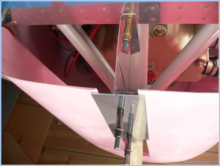 Suite de la construction du support arrière du capot inférieur. Une des pièces doit être pliée pour être ensuite fixée sur le support de la jambe de train avant, et j'ai fait un premier pliage un peu trop court. Il a donc fallu refabriquer la pièce dans une chute restante. Voici une vue de dessous avec l'ensemble monté. Je me suis d'ailleurs rendu compte que le carénage de la jambe de train est trop long, il va falloir le recouper. Et voici une vue depuis l'intérieur du capot. Les prochaines opération vont consister à peindre toutes les pièces fabriquées ces derniers temps. Temps de travail sur le sous-ensemble Aujourd'hui : 2h (Total : 40h) |