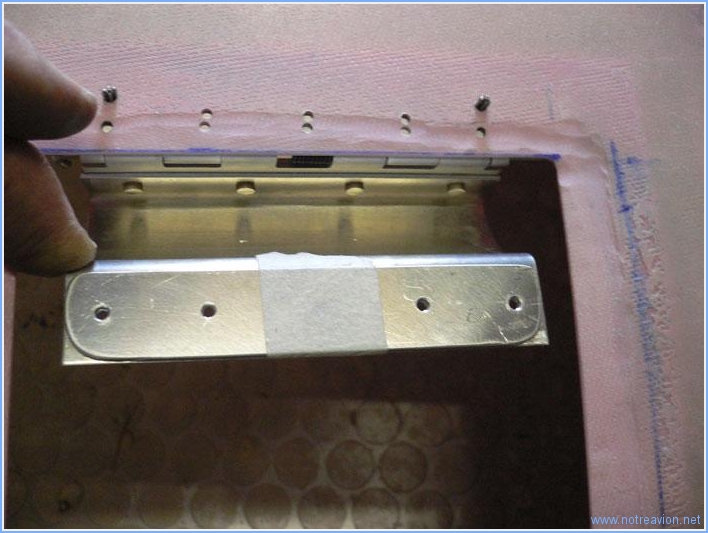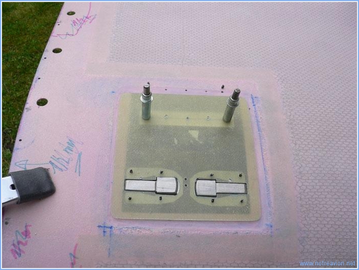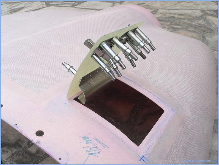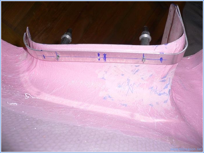 Quelques menus travaux autour des ouà¯es sur le capot inférieur. Il y a un joint à mettre en place entre la rampe avant et le bas de l'ouà¯e, et ce joint va être collé sur une languette métallique qui sera vissée sur le bord de l'ouà¯e. La forme est assez délicate à obtenir, voici ce que cela donne après perçage. Ensuite j'ai mis en place les écrous prisonniers pour les vis qui maintiennent les deux demi-capots. Certains trous percés précédemment ont été déplacés (c'est facile avec le composite, il suffit de reboucher l'ancien perçage) car interférant avec la languette fabriquée précédemment ou ne permettant pas la fixation de l'écrou. Temps de travail sur le sous-ensemble Aujourd'hui : 1h (Total : 41h) |