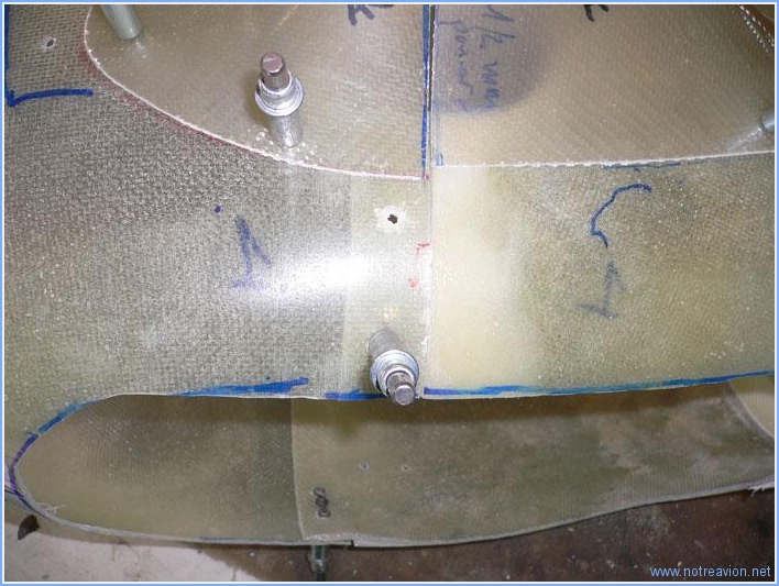 Suite des travaux de finition sur les carénages de roues. Tout d'abord un peu de remplissage au niveau des jonctions entre les collages effectués hier. Cela va permettre de poser de la fibre de verre sans risque de laisser de vide entre les pièces. Puis je pose quelques épaisseurs de fibre de verre aux endroits o๠vont se fixer les supports. Voici une photo des petits socles, visibles en blancs, fabriqués hier recouverts maintenant de quelques couches de fibre de verre. Temps de travail sur le sous-ensemble Aujourd'hui : 2h (Total : 49h) |