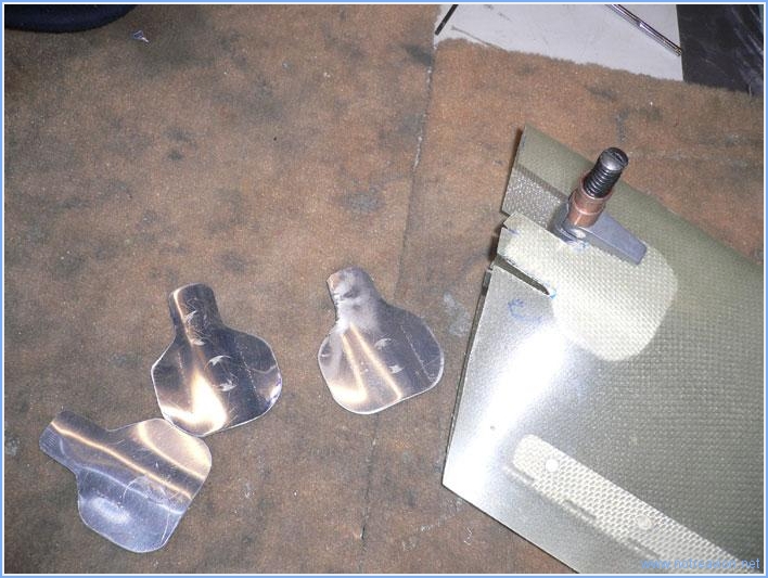 Avant de ranger les carénages pour le moment (il fait trop froid pour attaquer les finitions à l'epoxy), je termine l'ouverture pour le pneu droit. J'installe également un écrou prisonnier supplémentaire, il n'était pas évident à positionner avant la mise en place des petits carénages inférieurs. Les languettes de fixation supérieures des carénages des jambes de train sont assez fragiles; Van's recommande d'ajouter plusieurs épaisseurs de fibre de verre. J'ai décidé de renforcer un peu cet endroit en fabriquant des languettes en aluminium qui seront noyées dans la résine et la fibre de verre. Temps de travail sur le sous-ensemble Aujourd'hui : 1h (Total : 46h) |