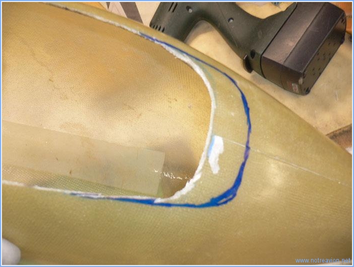 La journée est consacrée au début de la mise en place du carénage de la roulette de nez. Cela commence par une mise à niveau latérale et longitudinale du fuselage en faisant attention de ne pas écraser le pneu avant. J'ai été surpris de la hauteur de l'arrière du fuselage dans cette position. Ensuite il y beaucoup d'ajustement et de découpe sur les deux moitiés du carénage. L'ouverture pour le pneu est beaucoup trop petite. Voici une photo de la deuxième coupe, j'en avais enlevé autant la première fois. Après avoir découpé les deux parties, les voici en place. La prochaine étape consiste à percer les carénages et les trous de fixations sur les supports visibles en bleu par transparence. Voici tous les perçages effectués. J'ai également fait les perçages pour le passage de la fourche de tractage. Il restera encore pas mal de travail: mise en place de tous les écrous prisonniers pour les fixations, ajuster la découpe pour le pneu, ajuster la découpe pour la jambe de train, sans parler de la préparation pour la peinture. Temps de travail sur le sous-ensemble Aujourd'hui : 3h (Total : 26h) |
