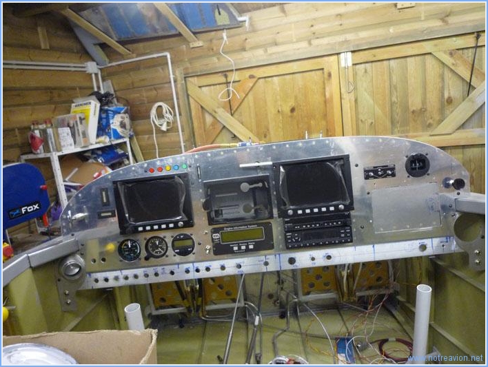 J'ai commencé par fabriquer les supports arrières des tiroirs des radios. Après quelques montages et démontages, voici le résultat coté gauche (c'est pareil à droite). J'ai ensuite installé tous les instruments dans le tableau de bord. Les câbles de commande du frein de parc et du chauffage passent par le panneau arrière, j'ai fais les perçages correspondants et installé de passe-fils. Les supports des aérateurs ont posés quelques problèmes,les écrous prisonniers n'étant pas parfaitement alignés. Après quelques coups de limes, le coté gauche est terminé. Du coté droit, un des écrous prisonniers doit être remplacé après la dépose du tableau de bord. Cette installation à blanc m'a permis de découvrir qu'il me manque quelques vis. Elle permettra la planification des passages des harnais électrique, des tuyau de pression totale et statique, ainsi que de positionner les divers accessoires : boites à fusibles, alticodeur, calculateur volet et trim... Temps de travail sur le sous-ensemble Aujourd'hui : 5h (Total : 65h) |