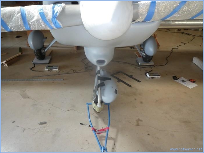 Aujourd'hui, avec l'aide de Sabine, et des constructeurs du hangar d'à coté, nous avons pesé l'avion. La photo montre les balances sous le train principal. Ensuite nous avons mis une balance sous la roulette et calé le train principal pour garder l'avion dans la même ligne. L'avion pèse 513,6kg à vide et le centrage est tout à fait dans les normes d'après les premières simulations de chargement. Il faudra toutefois faire attention au moment de la peinture pour ne pas trop diminuer la charge offerte. Temps de travail sur le sous-ensemble Aujourd'hui : 3h (Total : 87h) |