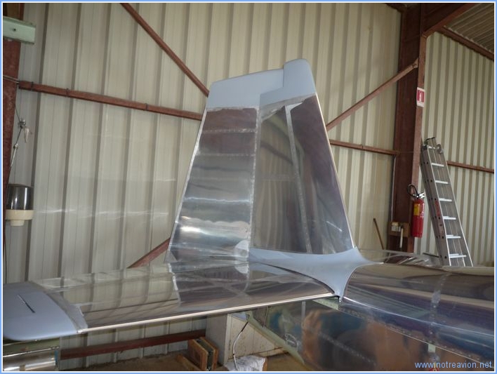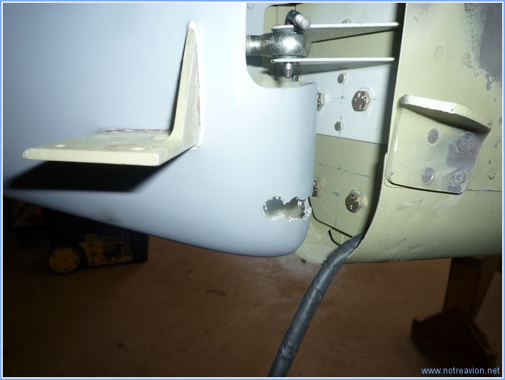 Le problème de la profondeur ne pouvait être résolu de façon simple, j'ai procédé au démontage de l'empennage vertical pour un meilleur accès et de la demi-profondeur droite pour modification. La photo (de mauvaise qualité), montre le non alignement du perçage en bas. La solution est de trouver quelqu'un pour reboucher ce perçage par soudure et de refaire le perçage. En attendant, j'ai installé définitivement les antennes radio et transpondeur. J'ai également préparé le terrain pour le montage des ailes. Temps de travail sur le sous-ensemble Aujourd'hui : 3h (Total : 12h) |