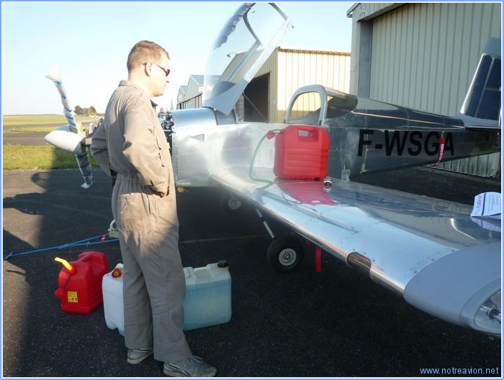 Avant de faire un premier ravitaillement, nous avons terminé le marquage de l'avion par la mise ne place de l'immatriculation sous les ailes ainsi que de la petite plaque en inox dont le but est d'identifier formellement l'avion en cas de malheur. Nous avons également reinstallé les câbles de la gouverne de direction. Puis, après quelques travaux dans le compartiment moteur (freinage du drain rapide et du filtre à huile et découverte de problèmes d'alimentation sur l'allumage électronique), l'avion a eu droit à sa première sortie. Nous avons ensuite rempli le réservoir gauche avec 79 litres d'essence par petit palier tout en notant les indications données par les jaugeurs pour permettre leur calibration. A première vue, il n'y a pas de grosse fuite mais attendons quelques jours. Nous avons également calibré les magnétomètres, pas de problème à gauche, mais sans doute un petit problème de câblage à droite. Temps de travail sur le sous-ensemble Aujourd'hui : 4h (Total : 91h) |