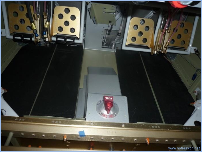 J'ai commencé par essayer d'installer le carénage récalcitrant. L'installation est possible, mais le joint n'est pas très bien positionné, je suis persuadé que l'espace entre la carénage et le fuselage est trop large. On corrigera un peu plus tard. J'ai ensuite installé définitivement toutes les canalisations carburant dans la cabine. Puis j'ai commencé un nettoyage des planchers pour installer à l'avant les tapis anti-bruit. Au niveau des sièges, il reste quelques petites finitions avant d'installer les planchers. Temps de travail sur le sous-ensemble Aujourd'hui : 4h (Total : 74h) |