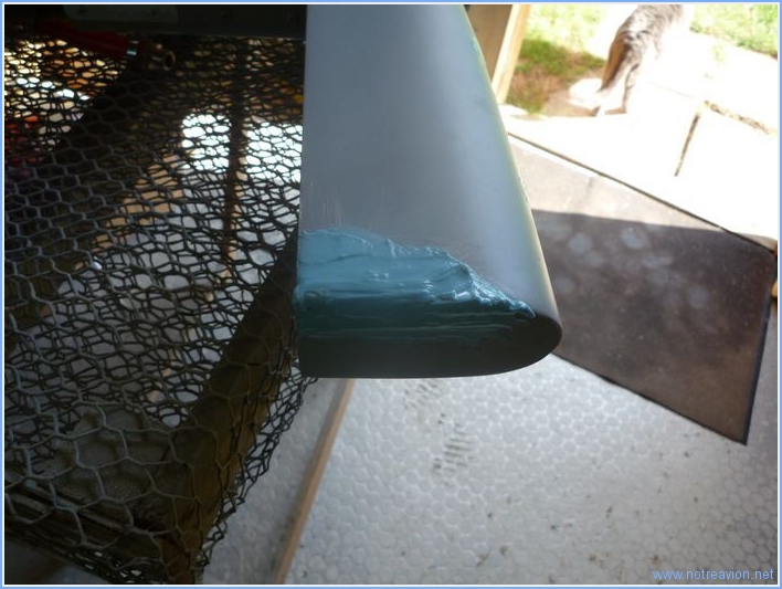 En attendant de recevoir le matériel pour fabriquer le renfort sur la profondeur, je taille un gabarit dans un morceau d'aluminium et fait les pré-perçages sur la corne. Le gabarit servira à fabriquer le renfort en acier qui sera riveté en place. Avec toutes ces manipulations, j'ai un peu abimé le bord de la gouverne. Un peu de mastic et un peu de peinture devrait permettre de résoudre le problème. Temps de travail sur le sous-ensemble Aujourd'hui : 1h (Total : 27h) |