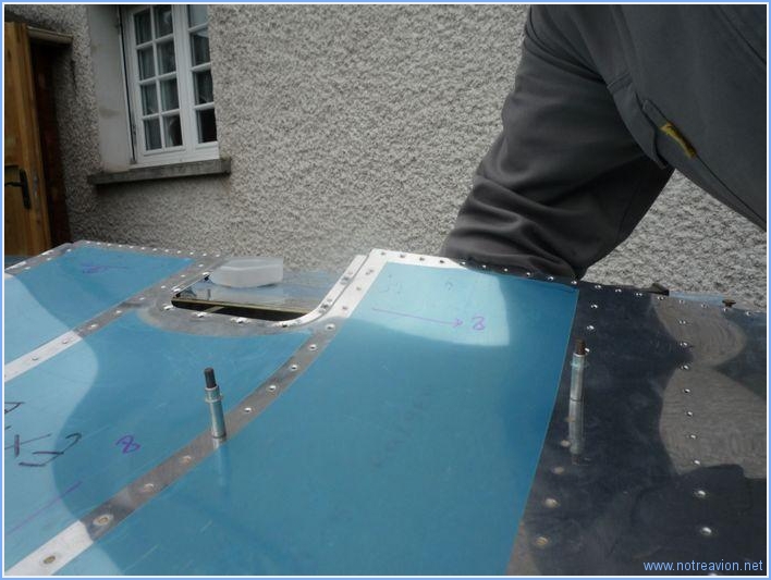 I go on riveting the right wing bottom skins. I have some difficulties with some rivets on the rear spar and make two small dings. I improved the way I rolled back the skin by using a strap rather than duct tape. I also leave some rivets out as I will rivet them tomorrow with Gaà«l, a future builder Working time on this subpart Today : 5h (Total : 78h) |