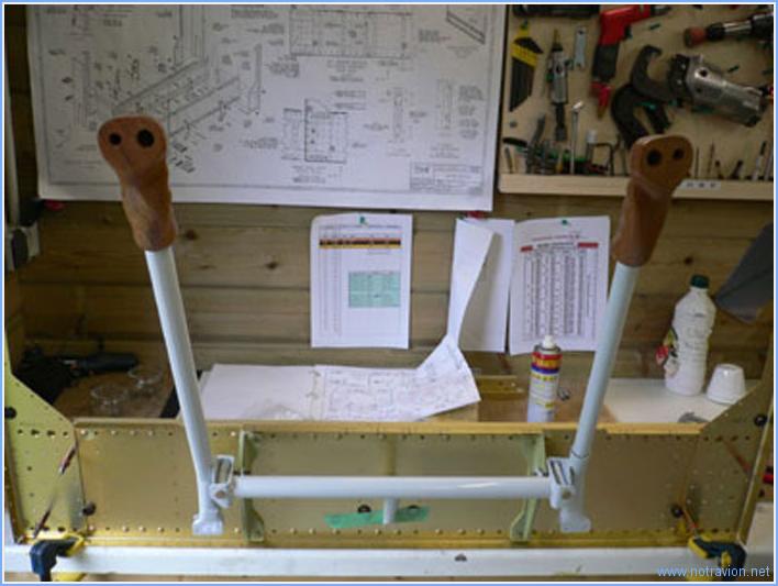 Ensuite, j'en profite pour appliquer le dernier Service Bulletin de Vans, qui consiste à fixer de façon permanente le manche de la place droite qui initialement était prévu amovible. Il suffit de faire un perçage et de mettre en place un boulon, une rondelle et un écran.