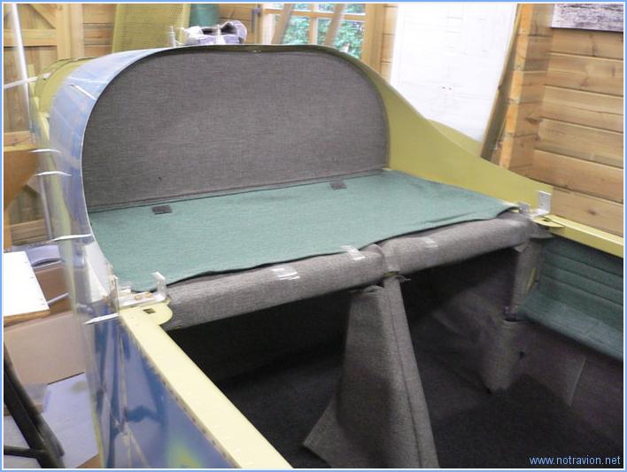 La journée a été consacrée à la mise en place toute provisoire des capitonnages et tapis dans la cabine. Cette opération est nécessaire pour savoir quelles sont les parties qui seront à peindre de la couleur intérieure. Il me semble superflu de peindre tout ce qui sera caché par l'aménagement. Naturellement il a fallu commencer par réinstaller tous les éléments de la cabine : planchers, capotages, caches...