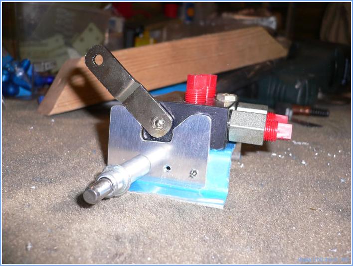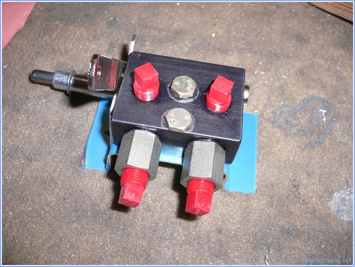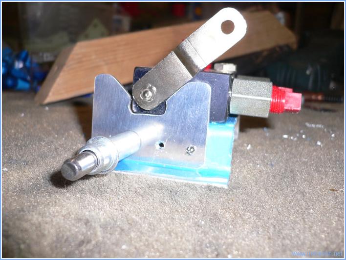 Aujourd'hui j'ai fabriqué le support pour la vanne de frein de parc. Le support principal est fait avec le chute de la pièce fabriquée hier,un cornière en U. Voici la vanne sur son support.